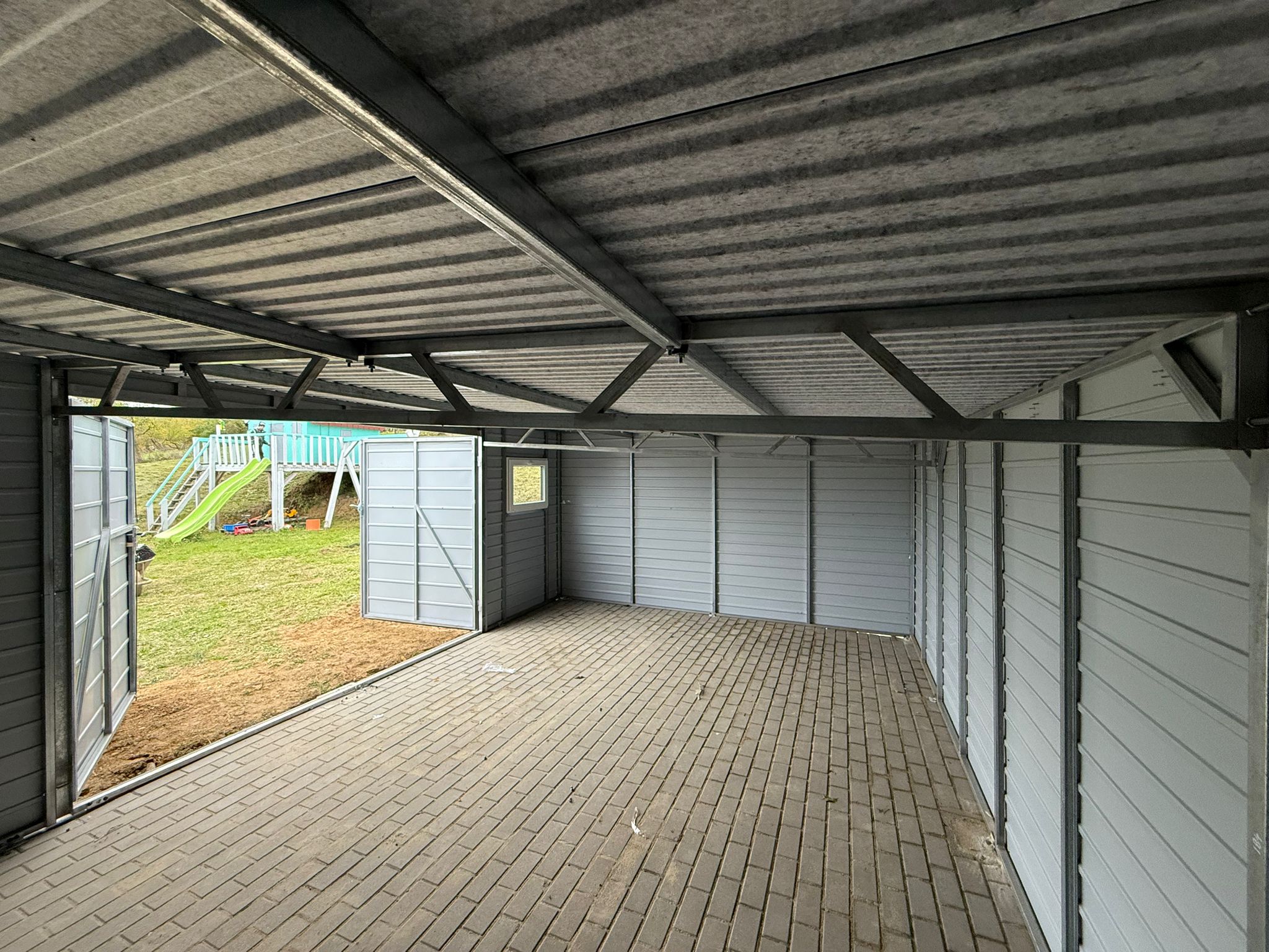 - Złożenie garażu: Garaż składany jest element po elemencie. Najpierw montujemy stelaż, następnie dach oraz akcesoria.